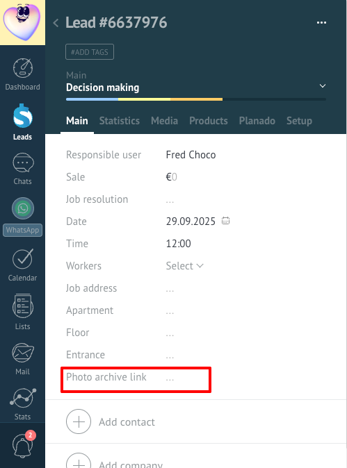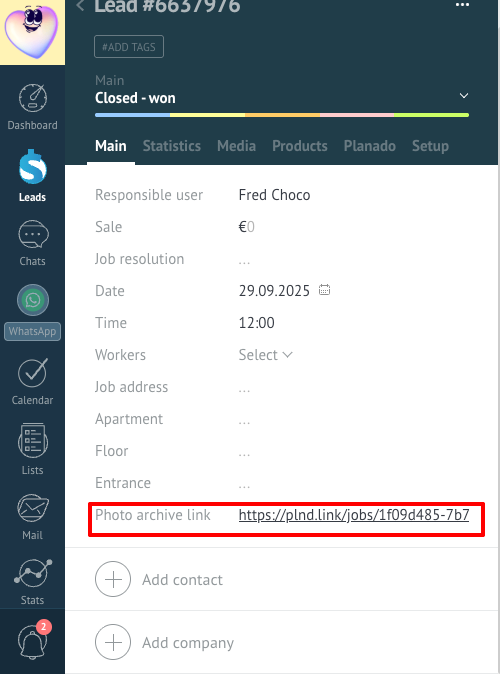 Now, when completing a job based on a deal, the link to the photo from the selected field will be transferred to the deal.